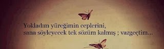 -Yokladım yüreğimin ceplerini; sana söyleyecek tek sözüm kalmış: Vazgeçtim..!Yazan admin / 7 Ocak 2013 ""— Yokladım yüreğimin ceplerini; sana söyleyecek tek sözüm kalmış: Vazgeçtim..!Aşk sevgi sözleriResimli sözler WhatsApp Twitter FacebookBenzer SözlerYalancı da mertlik Kıskanç ta huzur Tembel de dostluk Ve kötü huylu da efendilik olmaz..! Mevlanaİyileşmek mi? Ama ben hasta değilim ki, kırık döküğüm… Aynı şey değil, anlıyor musun? Frida Kahlo“Susuyorum. Konuşursam anlamazlar, Ben susarak anlaşılmayı tercih ediyorum" – Charles BukowskiRahmet etsin Râhman kavuşamayanlara . . . Kâhraman Araz"Erkek devlettir; yönetir, korur, sahip çıkar.. Kadın millettir; devleti yalnızca o ayakta tutar !"Evet anne küçükken ''YARAM AZDI…'' (Y.Semiz)Umutlar her zaman bakidir amma, zaman kısa, ben yorgunum, yol uzun. Abdurrahim KarakoçDuadan bıkkınlık göstermeyiniz. Çünkü dua ile beraber olan hiç kimse helak olmamıştır. Hz. Ali (r.a)