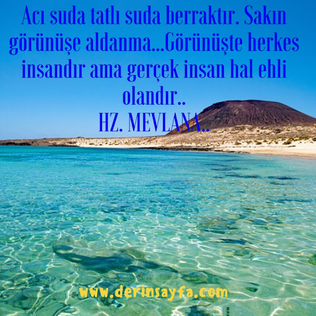 Acı suda tatlı suda berraktır. Sakın görünüşe aldanma…Görünüşte herkes insandır ama gerçek insan hal ehli olandır.. HZ. MEVLANA..