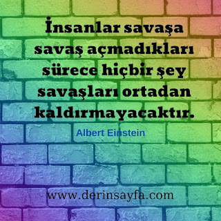 İnsanlar savaşa savaş açmadıkları sürece hiçbir şey savaşları ortadan kaldırmayacaktır. Albert Einstein
