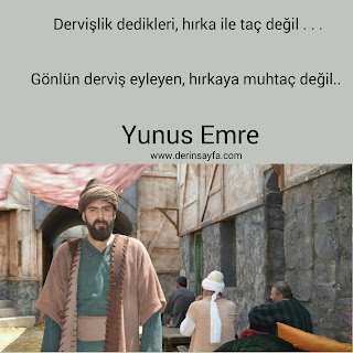 Dervişlik dedikleri, hırka ile taç değil . . . Gönlün derviş eyleyen, hırkaya muhtaç değil.. Yunus Emre