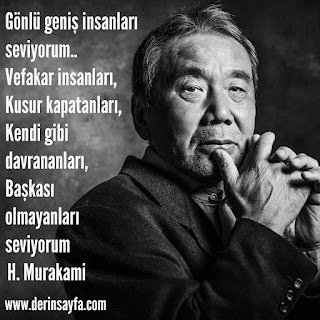 Gönlü geniş insanları seviyorum.. Vefakar insanları, kusur kapatanları, kendi gibi davrananları, başkası olmayanları seviyorum. H. Murakami