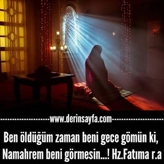 Ben öldüğüm zaman beni gece gömün ki, Namahrem beni görmesin…! Hz.Fatıma r.a Tesettür, makam odalarının özel kalemi gibidir. Kadını, ulaşılmaz