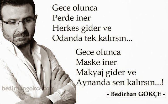 Gece olunca Perde iner Herkes gider ve Odanda tek kalırsın… Gece olunca Maske iner Makyaj gider ve Aynanda sen kalırsın…!
