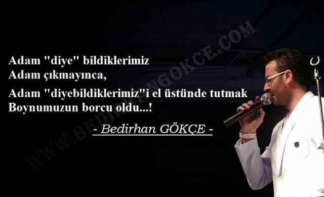Adam “diye” bildiklerimiz Adam çıkmayınca. Adam “diyebildiklerimiz”i el üstünde tutmak Boynumuzun borcu oldu…! (B.Gökçe)