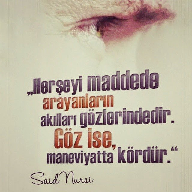 Herşeyi maddede arayanların akılları gözlerindedir. Göz ise mâneviyatta kördür. | Said Nursi