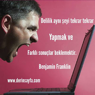 Delilik aynı şeyi tekrar tekrar yapmak ve farklı sonuçlar beklemektir. Benjamin Franklin