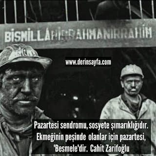 Pazartesi sendromu, Sosyete şımarıklığıdır. Ekmeğinin peşinde Olanlar için pazartesi, ‘Besmele’dir. /Cahit Zarifoğlu