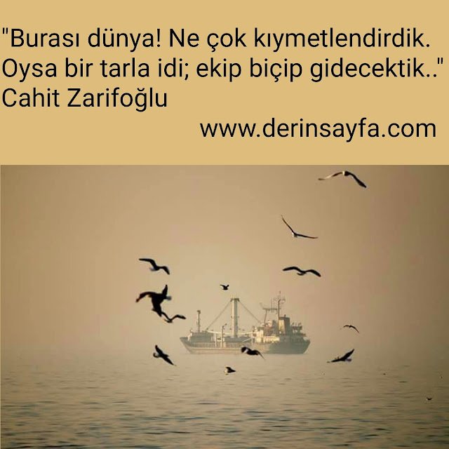“Burası dünya! Ne çok kıymetlendirdik. Oysa bir tarla idi; ekip biçip gidecektik..” Cahit Zarifoğlu