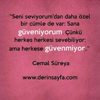Seni seviyorum’dan daha özel bir cümle de var: Sana güveniyorum. Çünkü herkes herkesi sevebiliyor; ama herkese güvenmiyor. Cemal Süreya