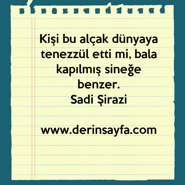 Kişi bu alçak dünyaya tenezzül etti mi, bala kapılmış sineğe benzer. Sadi Şirazi