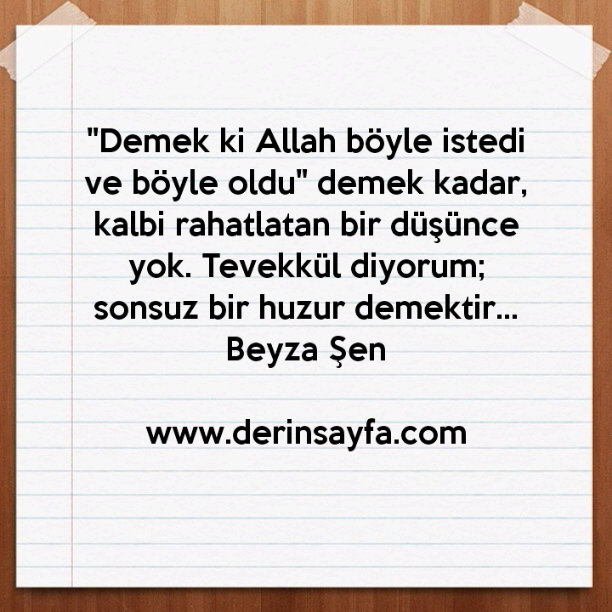 “Demek ki Allah böyle istedi ve böyle oldu” demek kadar, kalbi rahatlatan bir düşünce yok. Tevekkül diyorum; sonsuz bir huzur