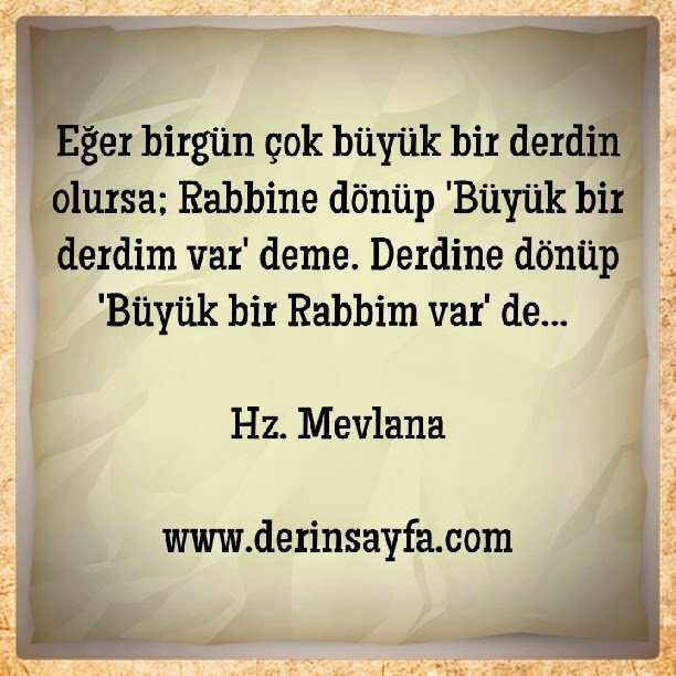Eğer birgün çok büyük bir derdin olursa; Rabbine dönüp ‘Büyük bir derdim var’ deme. Derdine dönüp ‘Büyük bir Rabbim var’