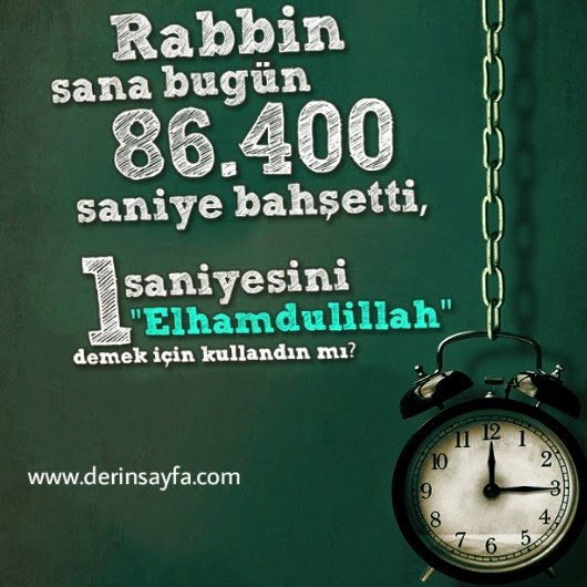 “Rabbin sana bugün 86.400 saniye bahşetti. 1 tanesini Elhamdulillah demek için kullandın mı?”