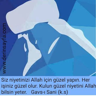 Siz niyetinizi Allah için güzel yapın. Her işiniz güzel olur. Kulun güzel niyetini Allah bilsin yeter. Gavs-ı Sani (k.s)