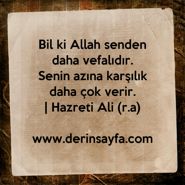 Bil ki Allah senden daha vefalıdır. Senin azına karşılık daha çok verir. | Hazreti Ali (r.a)