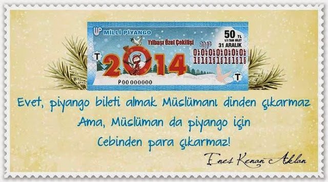 Evet, piyango bileti almak Müslümanı dinden çıkarmaz ama, müslüman da piyango için cebinden para çıkarmaz! Enes Kenan Aklan