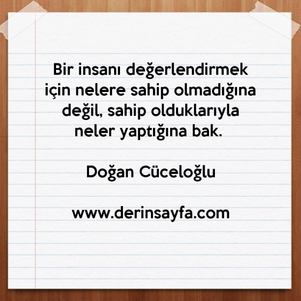 Bir insanı değerlendirmek için nelere sahip olmadığına değil, sahip olduklarıyla neler yaptığına bak. Doğan Cüceloğlu
