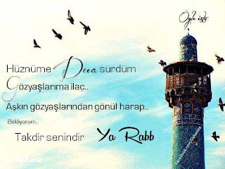 Rabbim sen güzelsin, güzeli seversin. Aklımızı, ahlâkımızı, kalbimizi güzel eyle… güzelleri kalbimizden, başımızdan, ömrümüzden eksik eyleme… Şimdi biz bütün yalnızlar