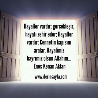 Hayaller vardır; gerçekleşir, hayatı zehir eder; Hayaller vardır; Cennetin kapısını aralar. Hayalimiz hayrımız olsun Allahım… | Enes Kenan Aklan