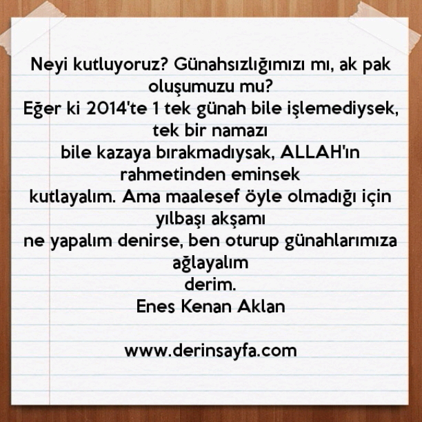 Neyi kutluyoruz? Günahsızlığımızı mı, ak pak oluşumuzu mu? Eğer ki 2014’te 1 tek günah bile işlemediysek, tek bir namazı bile