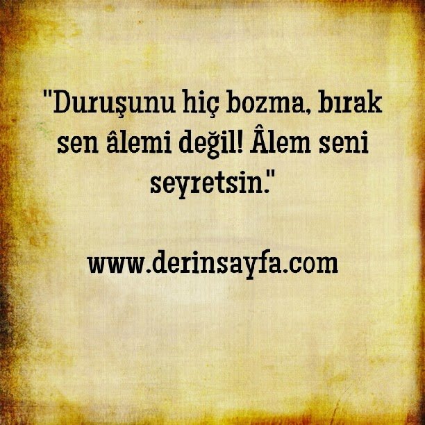 "Duruşunu hiç bozma, bırak sen âlemi değil! Âlem seni seyretsin."