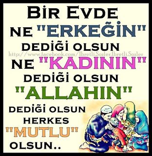 EVDE; NE ERKEĞİN DEDİĞİ,NEDE KADININ DEDİĞİ OLSUN ; SADECE ALLAH’IN DEDİĞİ OLSUN HERKES MUTLU OLSUN. . . !