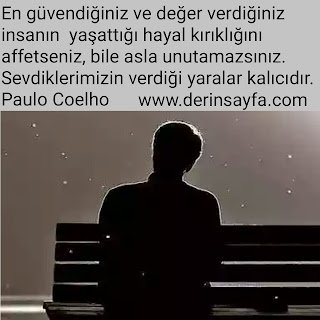 En güvendiğiniz ve değer verdiğiniz insanın yaşattığı hayal kırıklığını affetseniz, bile asla unutamazsınız. Sevdiklerimizin verdiği yaralar kalıcıdır. Paulo Coelho