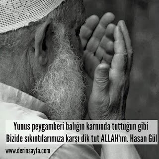 Yunus peygamberi balığın karnında tuttuğun gibi Bizide sıkıntılarımıza karşı dik tut ALLAH’ım. Hasan Gül