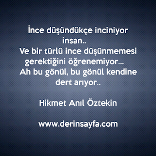 İnce düşündükçe inciniyor insan.. Ve bir türlü ince düşünmemesi gerektiğini öğrenemiyor.. Hikmet Anıl Öztekin