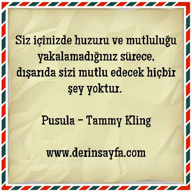 Siz içinizde huzuru ve mutluluğu yakalamadığınız sürece, dışarıda sizi mutlu edecek hiçbir şey yoktur. Pusula – Tammy Kling