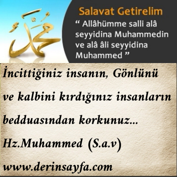 İncittiğiniz insanın, gönlünü ve kalbini kırdığınız insanların bedduasından korkunuz… Hz.Muhammed (S.a.v)