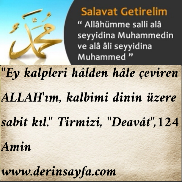 “Ey kalpleri hâlden hâle çeviren ALLAH’ım, kalbimi dinin üzere sabit kıl.” Tirmizi, “Deavât”,124 Amin