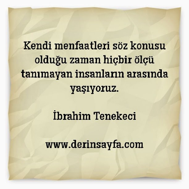 Kendi menfaatleri söz konusu olduğu zaman hiçbir ölçü tanımayan insanların arasında yaşıyoruz. İbrahim Tenekeci