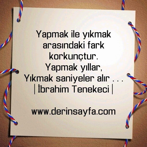 Yapmak ile yıkmak arasındaki fark korkunçtur. Yapmak yıllar, Yıkmak saniyeler alır . . . | İbrahim Tenekeci |