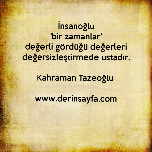İnsanoğlu 'bir zamanlar' değerli gördüğü değerleri değersizleştirmede ustadır. Kahraman Tazeoğlu