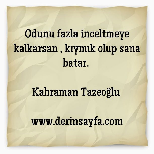 Odunu fazla inceltmeye kalkarsan , kıymık olup sana batar. Kahraman Tazeoğlu