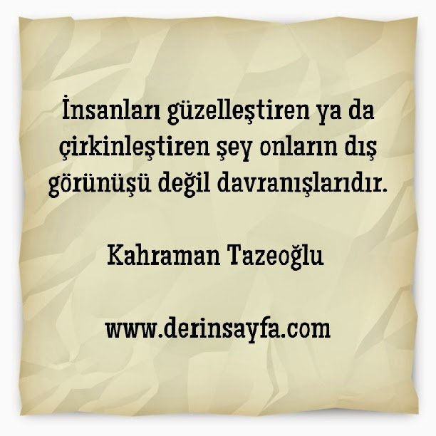 İnsanları güzelleştiren ya da çirkinleştiren şey onların dış görünüşü değil davranışlarıdır. Kahraman Tazeoğlu