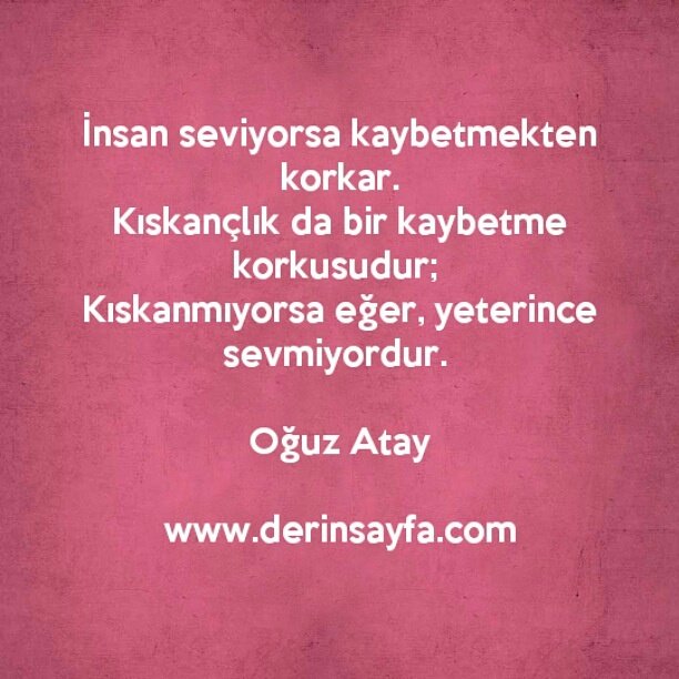 İnsan seviyorsa kaybetmekten korkar. Kıskançlık da bir kaybetme korkusudur; Kıskanmıyorsa eğer, yeterince sevmiyordur. Oğuz Atay