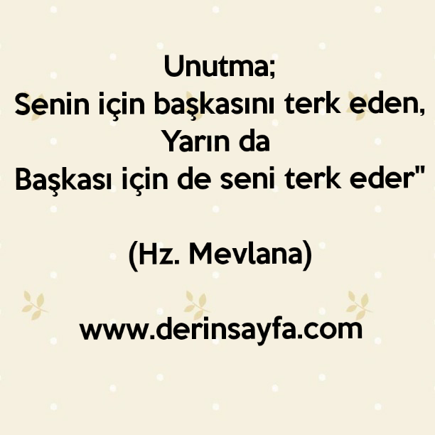 Unutma; Senin için başkasını terk eden, Yarın da Başkası için de seni terk eder” (Hz. Mevlana)