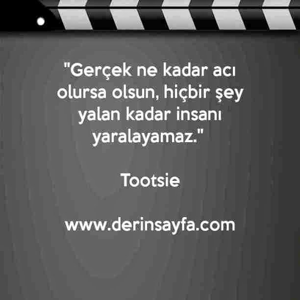 “Gerçek ne kadar acı olursa olsun, hiçbir şey yalan kadar insanı yaralayamaz.” – Tootsie