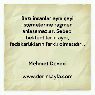 Bazı insanlar aynı şeyi istemelerine rağmen anlaşamazlar. Sebebi beklentilerin aynı, fedakarlıkların farklı olmasıdır… Mehmet Deveci