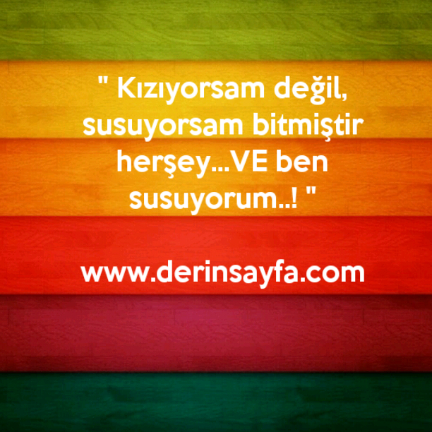 " Kızıyorsam değil, susuyorsam bitmiştir herşey…VE ben susuyorum..! "
