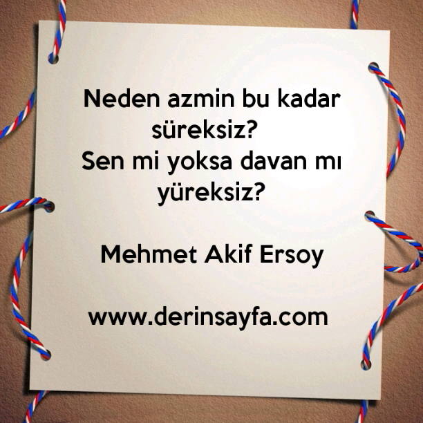 Neden azmin bu kadar süreksiz? Sen mi yoksa davan mı yüreksiz? Mehmet Akif Ersoy