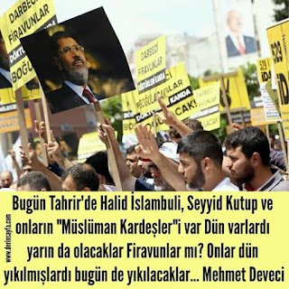 Bugün Tahrir’de Halid İslambuli, Seyyid Kutup ve onların “Müslüman Kardeşler”i var Dün varlardı yarın da olacaklar Firavunlar mı? Onlar dün