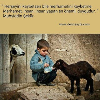 ” Herşeyini kaybetsen bile merhametini kaybetme. Merhamet, insanı insan yapan en önemli duygudur. ” Muhyiddin Şekür