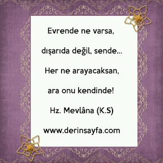 Evrende ne varsa, dışarıda değil, sende… Her ne arayacaksan, ara onu kendinde! Hz. Mevlâna (K.S)