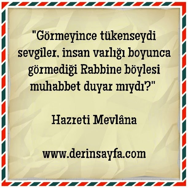 “Görmeyince tükenseydi sevgiler, insan varlığı boyunca görmediği Rabbine böylesi muhabbet duyar mıydı?” Hazreti Mevlâna