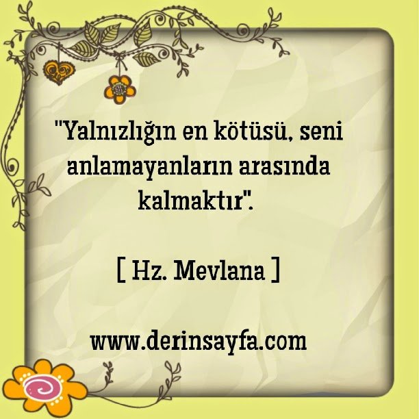 “Yanlızlığın en kötüsü, seni anlamayanların arasında kalmaktır..” Mevlana Celaleddin Rumi