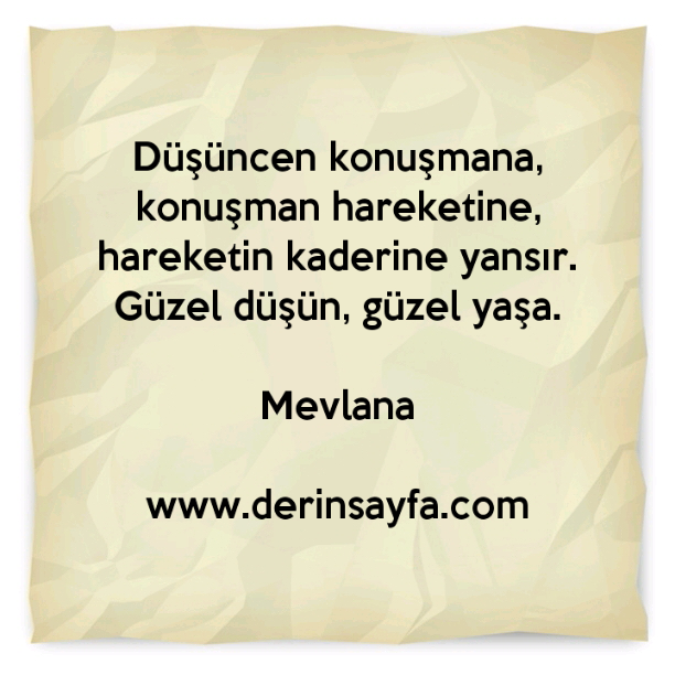 Düşüncen konuşmana, konuşman hareketine, hareketin kaderine yansır. Güzel düşün, güzel yaşa. – Mevlana