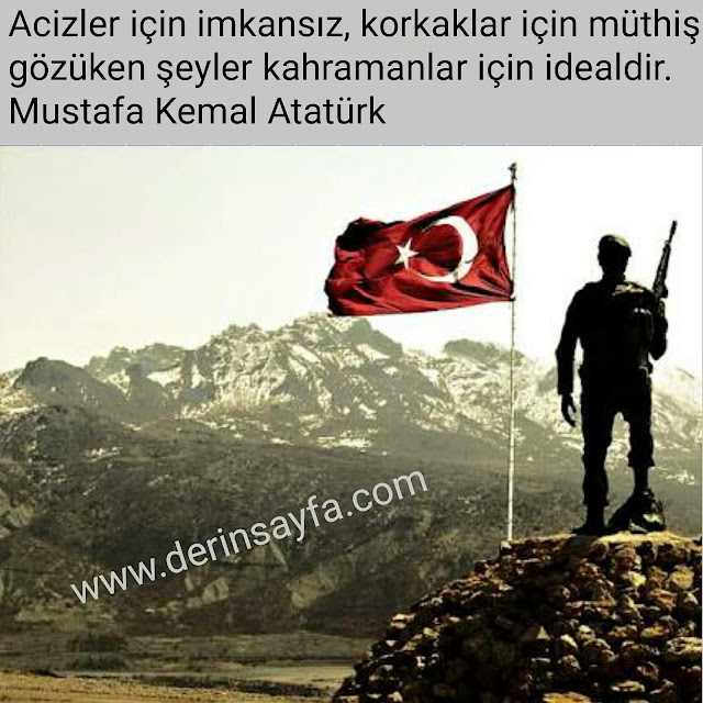 Acizler için imkansız, korkaklar için müthiş gözüken şeyler kahramanlar için idealdir. Mustafa Kemal Atatürk